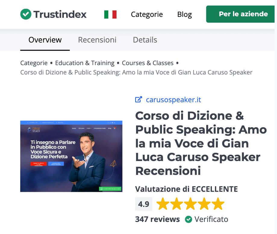 Ti contatterò io personalmente, mi chiamo Gian Luca Caruso e sono un Vocal Business Coach. Per avere informazioni su di me puoi visitare il mio sito carusospeaker.it e cercare il mio nome su Google e Youtube.